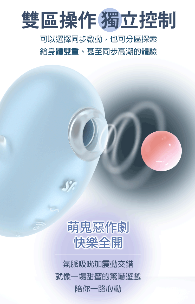 可愛外型下,隱藏雙重誘惑 —— 吸吮 + 震動 2 in 1,一次滿足兩種渴望。